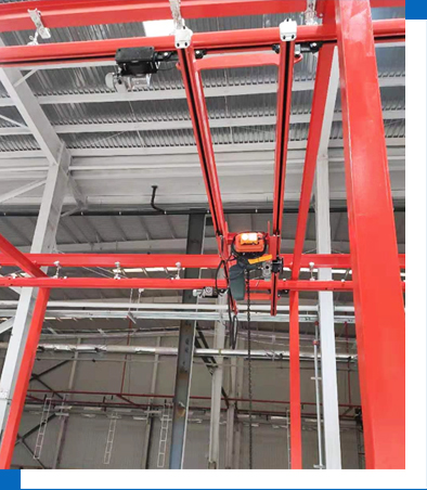 將KBK懸掛起重機主梁吊掛裝置與軌道上的小車或承載粱連接,當起重機與軌道呈直角布置時,應(yīng)使主梁吊掛裝置垂直。